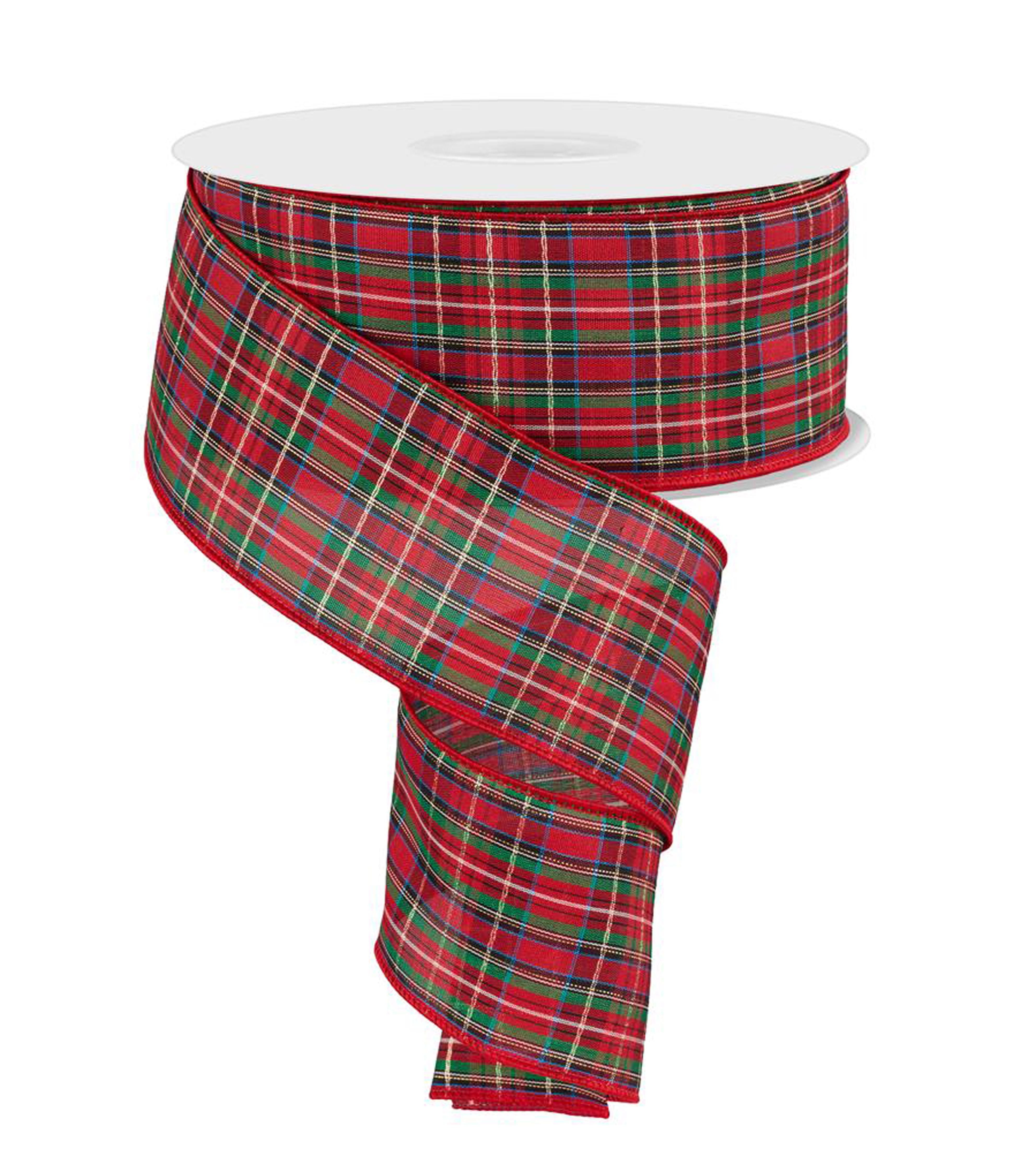 2.5" x 50yd Woven Plaid Color: Red/Grn/Wht/Blue/Blk Material: 90% Polyester/10% Metallic Read more