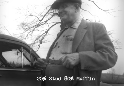 A humorous greeting card lending a vintage photograph to coordinate with its outside "20% Stud 80% Muffin" sentiment and inside... Read more