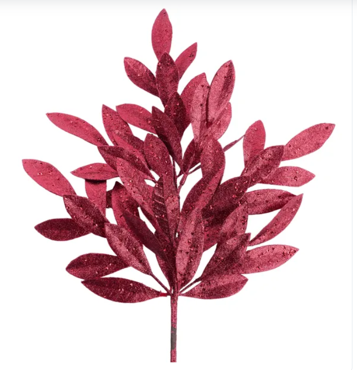 23" Glitter Bay Leaf Spray Burgundy