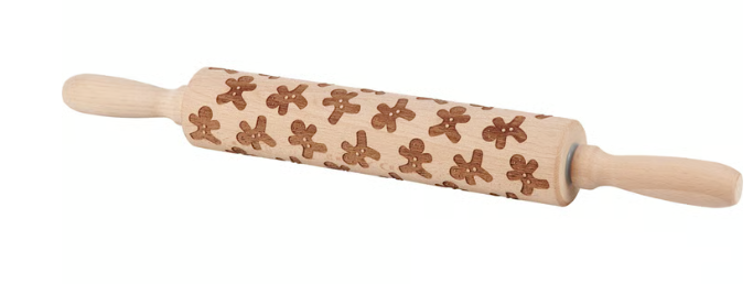 A large wooden rolling pin from our Christmas Collection featuring debossed gingerbread men designs along the roller that create fun embossed patterns... Read more