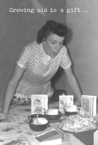 A humorous greeting card from our Trash Talk by Annie Collection features a vintage photograph with "Growing Old Is A Gift…" sentiment... Read more