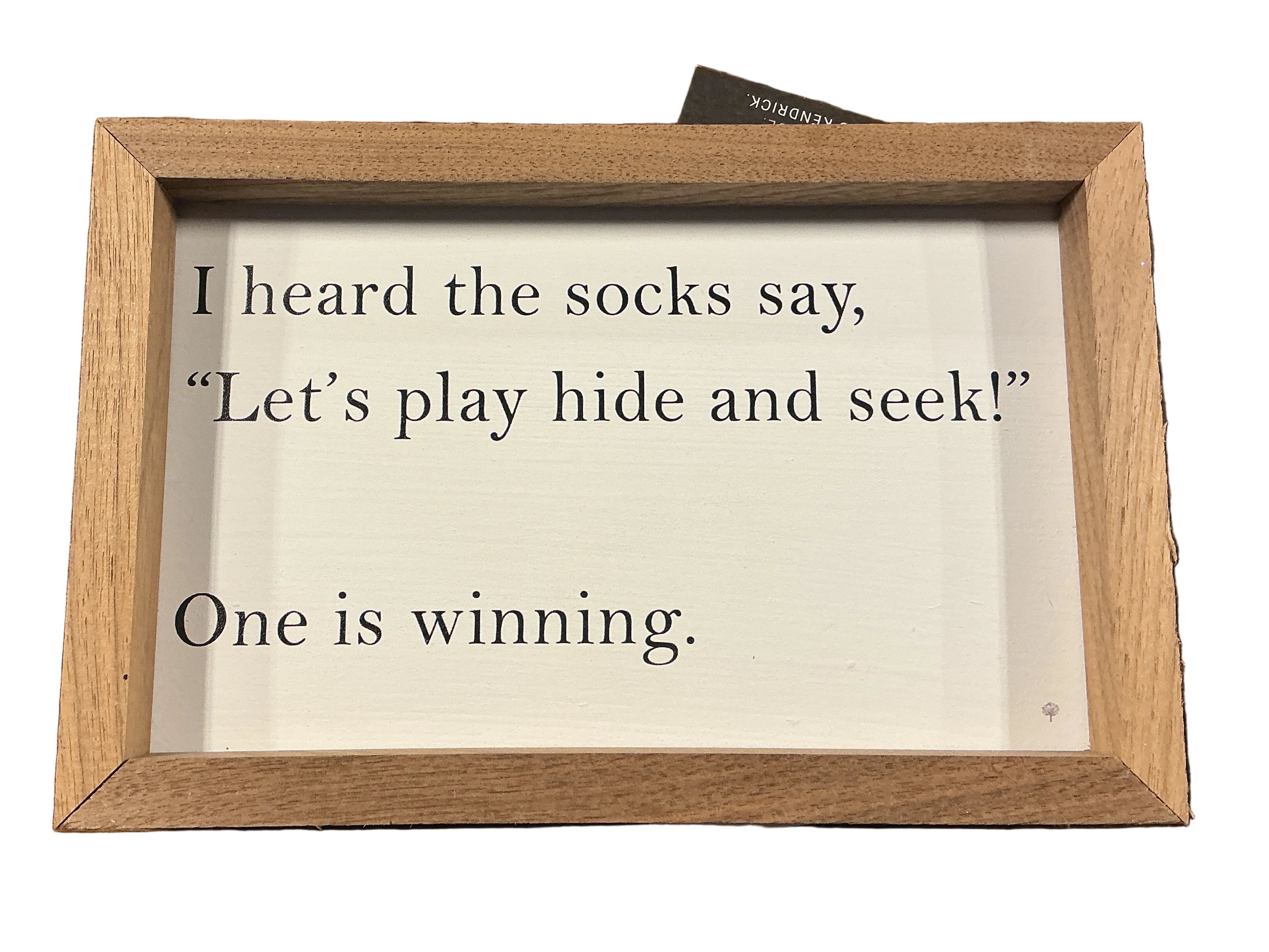 I Heard The Socks Say Sign Last stock! Product form Kendrick Home I Heard The Socks Say Sign Free pickup in our shop(s) 2 in stock Order today, shipped today $26.95 Quantity Add to cart This item is a recurring or deferred purchase. By continuing, I agree to the cancellation policy and authorize you to charge my payment method at the prices, frequency and dates listed on this page until my order is fulfilled or I cancel, if permitted. SKU: 4IHESOC0805