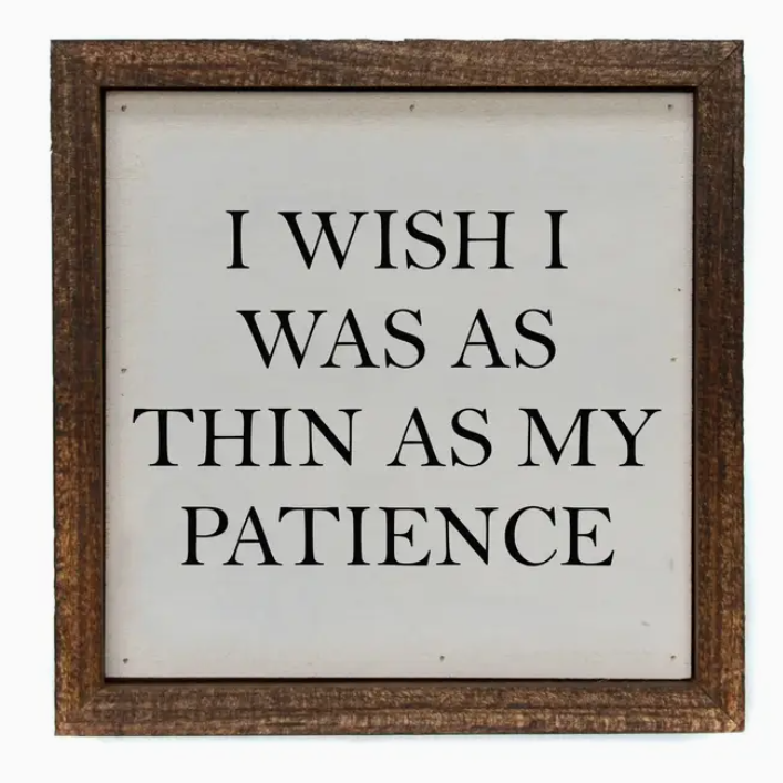 I Wish I Was As Thin As My Patience Small Box Sign. All our signs are build into a wooden... Read more