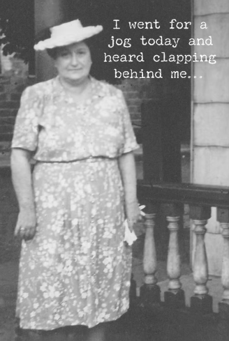 A humorous greeting card from our Trash Talk by Annie Collection features a vintage photograph with "I Went For A Jog Today... Read more