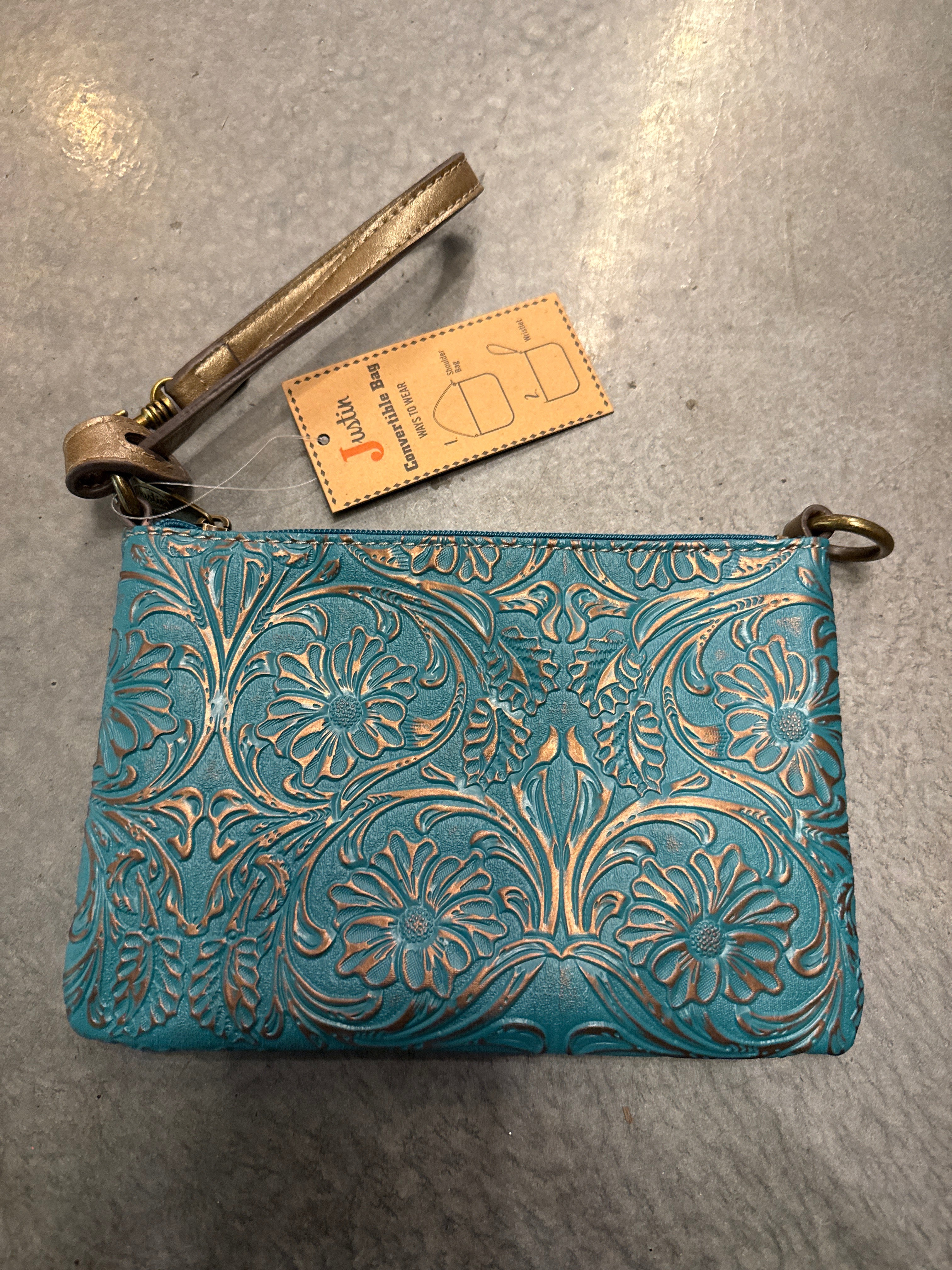 Justin turquoise tooled leather handbag 8” x 6” Read more