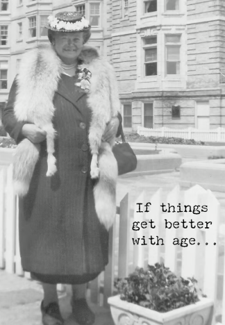 A humorous greeting card from our Trash Talk by Annie Collection features a vintage photograph with "If Things Get Better With Age…"... Read more