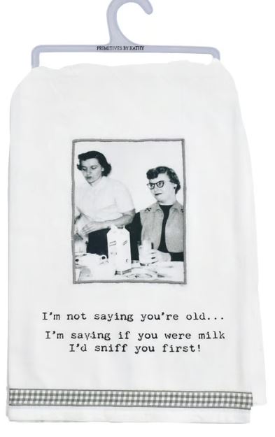 A cotton kitchen towel from our Trash Talk by Annie Collection features a stitched art panel with vintage photograph, "I'm Not Saying... Read more