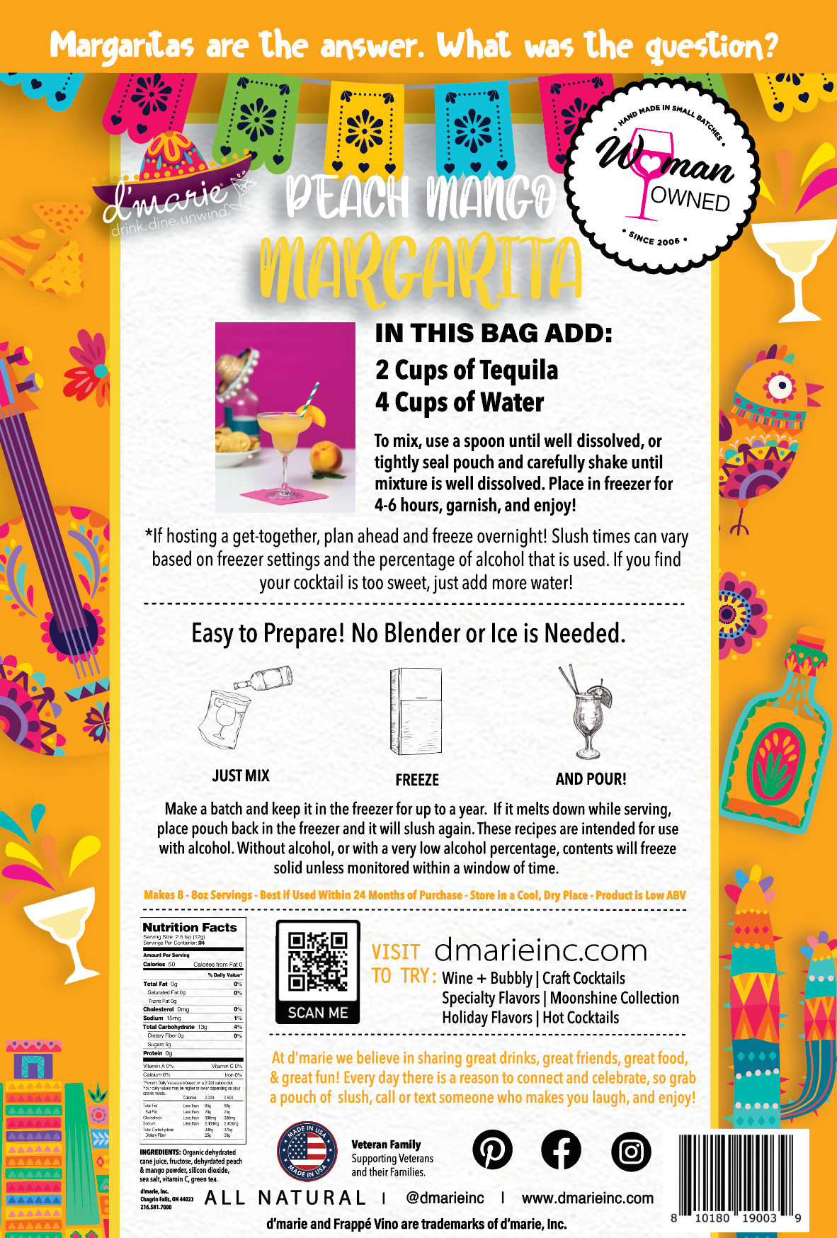 Our Peach Mango Margarita Slush Mix is made with real Peaches and Mango! Just Mix, Freeze, and Pour! Directions are below 100% All Natural Ingredients,... Read more