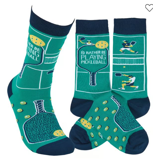 vA pair of colorful socks from our LOL-Made You Smile Collection displaying unique hand illustrated designs of pickleball players on a... Read more