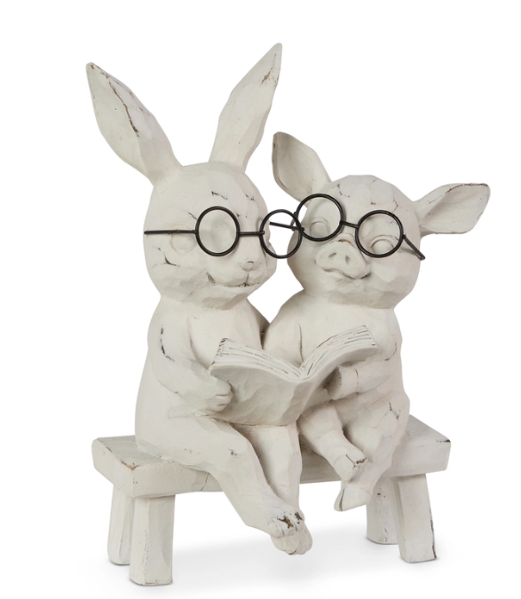 7" Reading Bunny and Pig on Bench