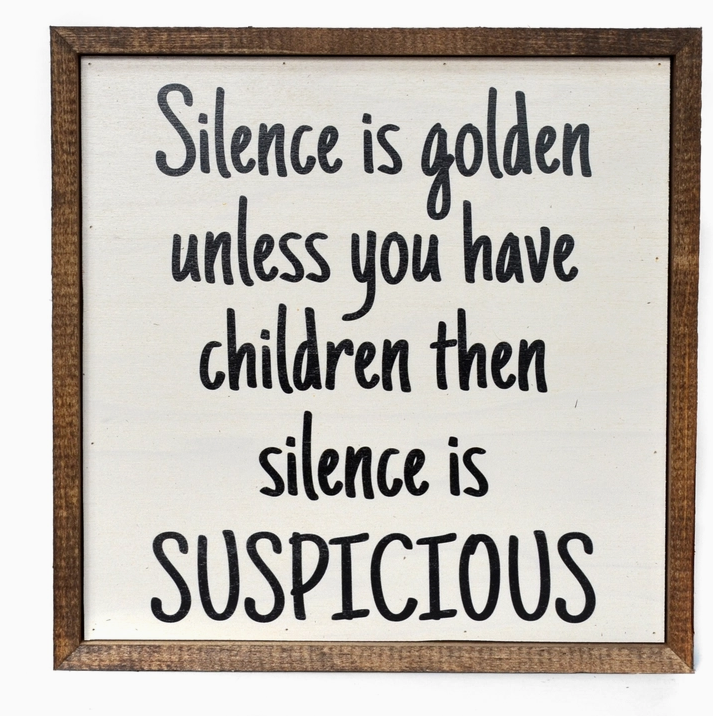 Silence is golden unless you have children then silence is suspicious wood wall art. All our signs are build into... Read more