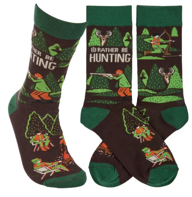 A pair of colorful woven socks from our LOL Made You Smile Collection displaying hand illustrated designs of hunters and deer in... Read more