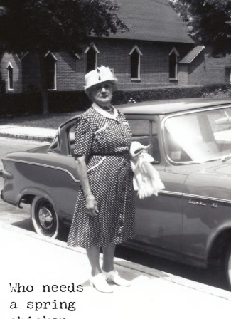 A humorous greeting card lending a vintage photograph to coordinate with its outside "Who Needs A Spring Chicken..." sentiment and... Read more