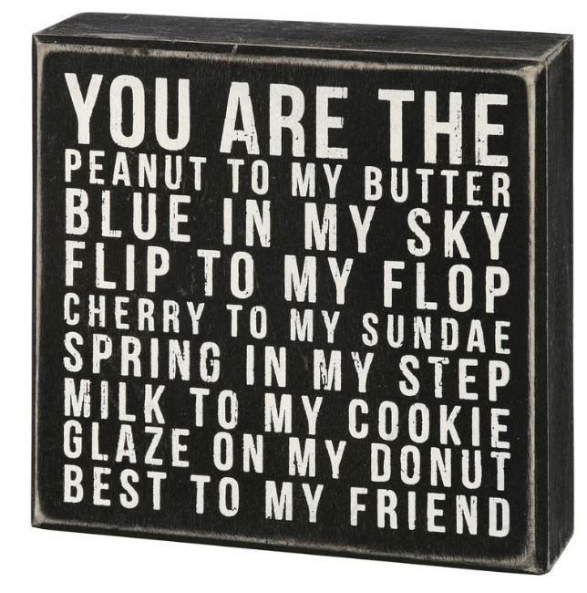 A classic black and white wooden box sign featuring a distressed "You Are The Peanut To My Butter - Blue... Read more